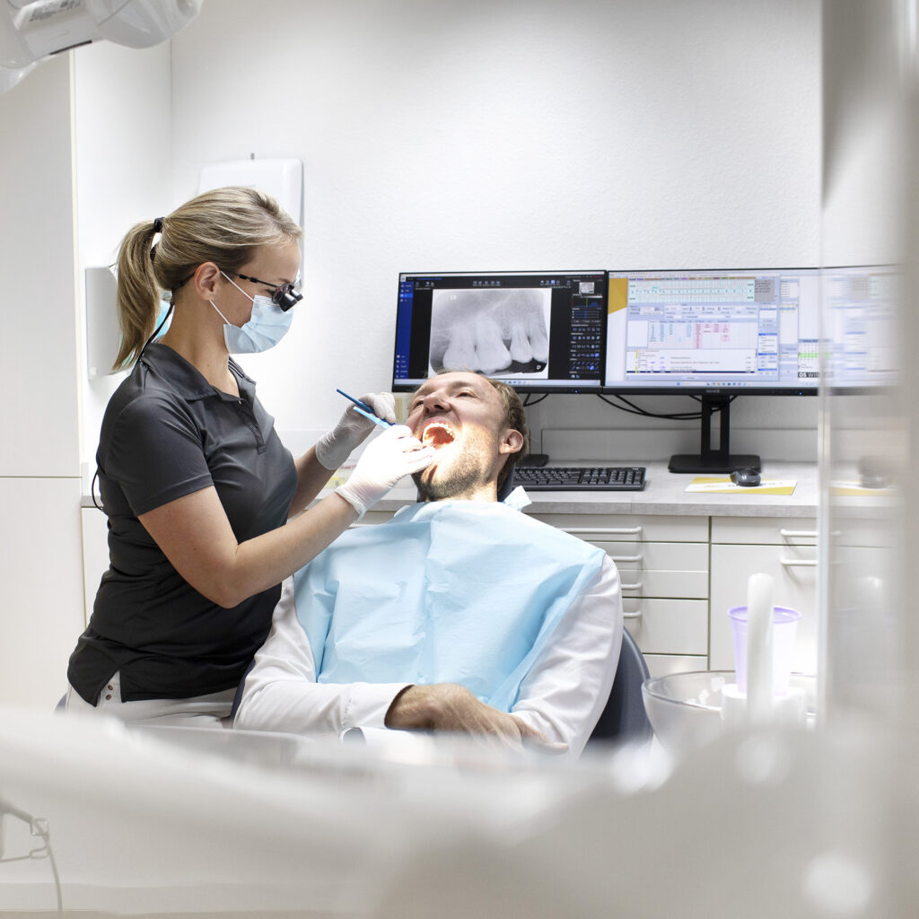 Wir setzen alles daran, Ihre natürlichen Zähne so lange wie möglich gesund zu erhalten. Mit modernen Behandlungsmethoden und präventiven Maßnahmen behandeln wir Schäden frühzeitig, reparieren kariöse Stellen und sorgen für langfristige Stabilität und Funktion Ihrer Zähne.