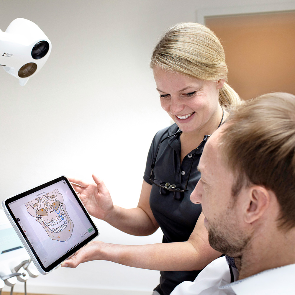 Mit modernster 3D-Röntgentechnologie erstellen wir detailgenaue Aufnahmen von Kiefer und Knochenstruktur. So können wir den Knochen Schicht für Schicht betrachten und genau planen, wo beispielsweise ein Implantat optimal eingesetzt werden kann – sicher, präzise und schonend.